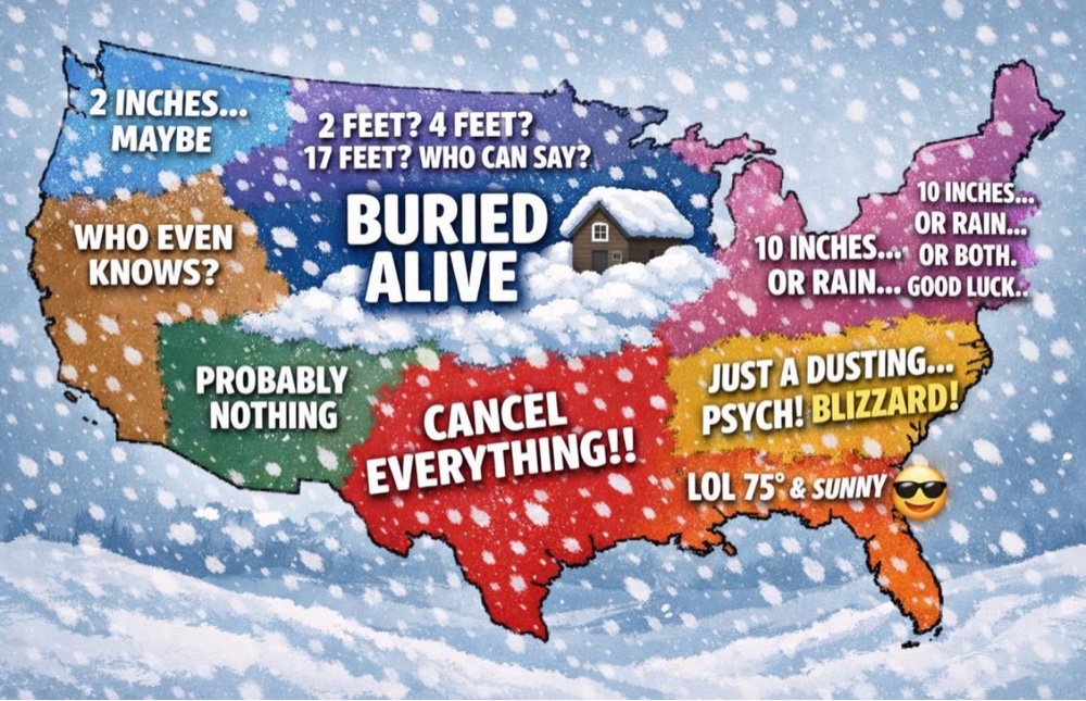 sort of has that feeling in the air cause I think parts of the storm are creeping up here like socialism. I’m gonna do yoga later on and then split right after class. I have choir concert starts at eight, but I have to be there at six. Fortunately, the dress is casual and I would’ve showered right after yoga. Now I gotta grab some lunch and go to the CVS. Well, we could have up to 18 inches of snow but it still fits in line with the range of 8 to 18 inches that they’ve been talking about for the last two days. Mary’s telling me there’s already panic buying at the Mom’s organic market and Whole Foods so even intelligent people know better or panic buying. You know they have plenty of food in the fridge. It’s not like they’re pouring. They’re like only have a bag of potato chips and a bag of potatoes left dear God anyway…………
