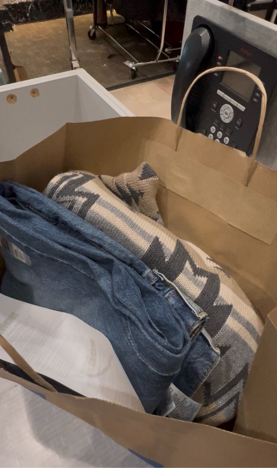 blue jeans that might fit me. That was a bit of a challenge, but the first pair were like euro style. It’s below the waist, which is really somewhat uncomfortable. The second pair was much more my style