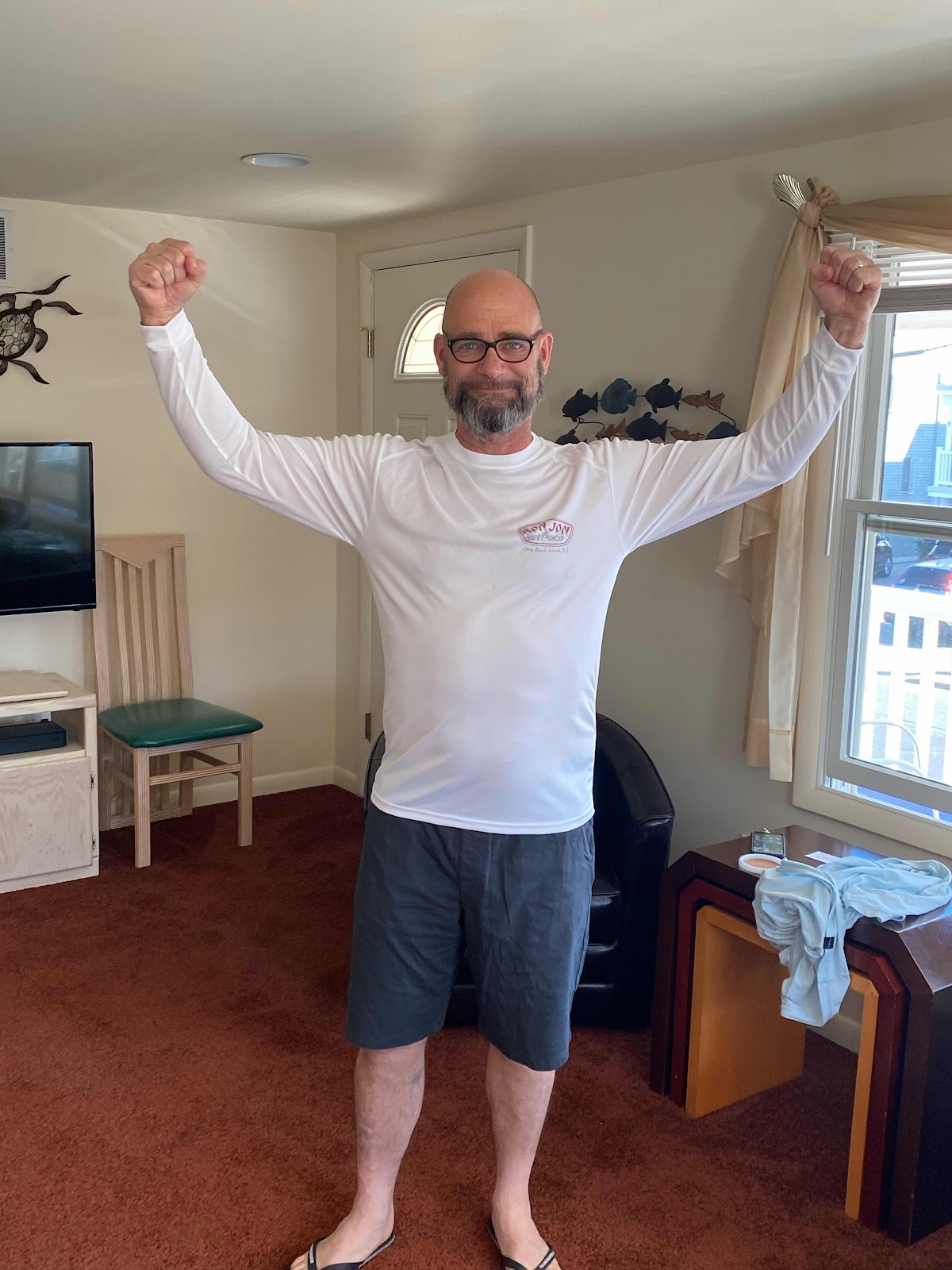 day they’re here and then Pats to pick me up Tuesday morning at 10 o’clock. I have to talk to him to confirm this arrangement. The Long Beach Island bus does not run back to Philadelphia during the normal weekdays when they’re not holidays