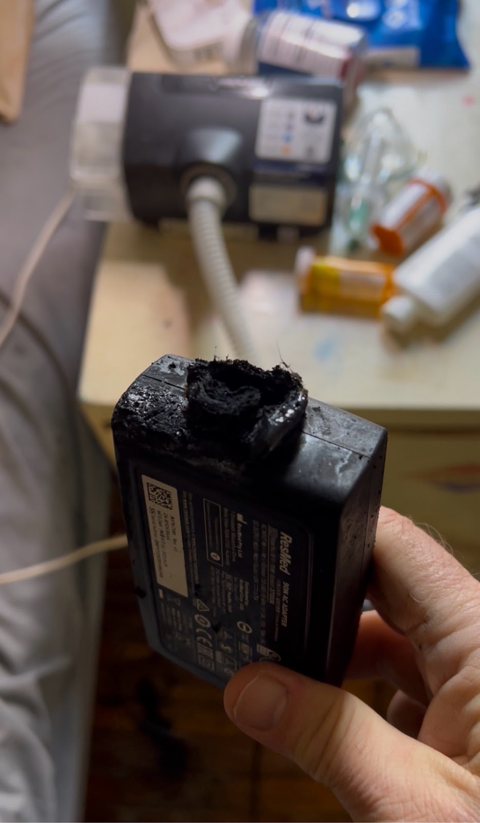 the CPAP cord that he spilled water on in started, belching out black smoky ruined the cord and the charging box it comes with the cord. It was very funky. I then finished off three applications and I’m going to