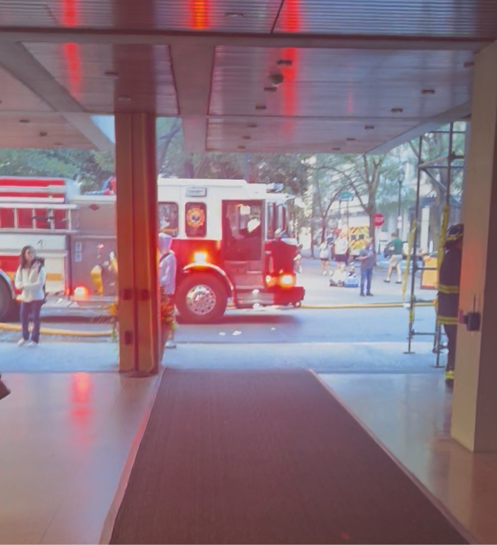 After a decent amount of sleep, when the fire alarm went off and told everybody to to exit the building, we didn’t think it was a real fire, but