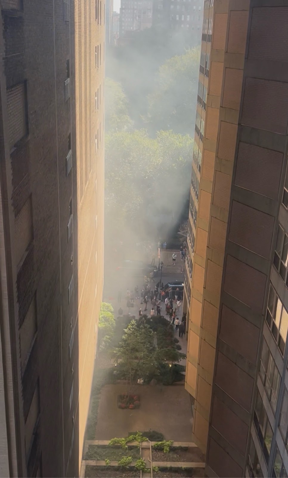 then we got up and looked outside, and there was smoke outside the window. Then we smelled it we knew it was real. We then found out it was a trash, compactor fire. We left the building