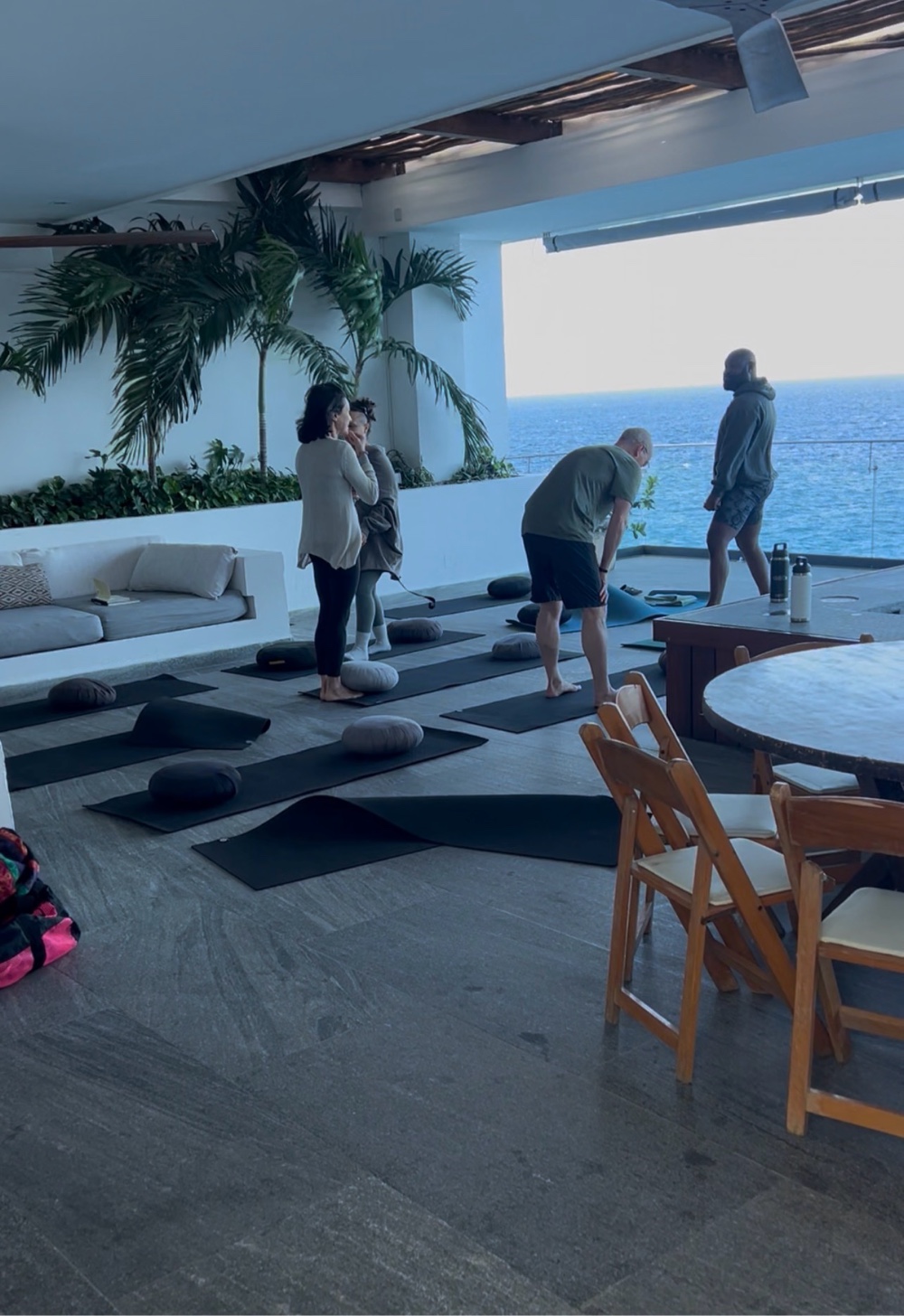 other things that were very very tasty. We then went up to the roof level and did our 90 minute morning yoga class. I informed loopy of the fact that