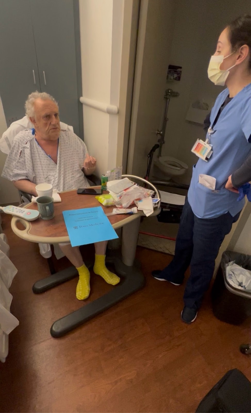 in a great mood went to his room. The place kinda had a smell to it. Mike had a person next to him in the hospital. Who’ve been there for a year