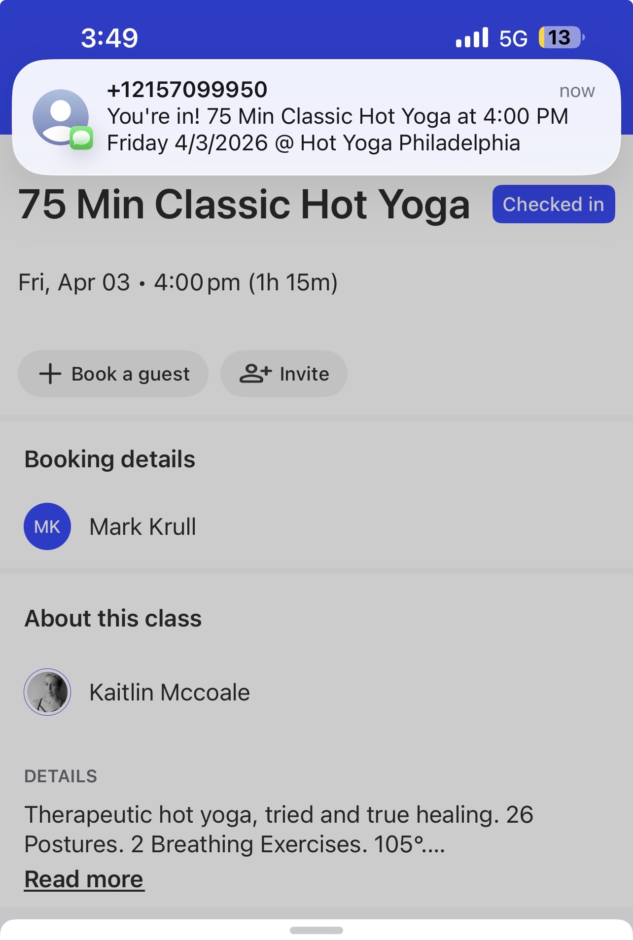 Street at 15th. The class was taught by Katelynn. I got their own time and class wasn’t too crowded at all. We were upstairs. We had plenty of room to