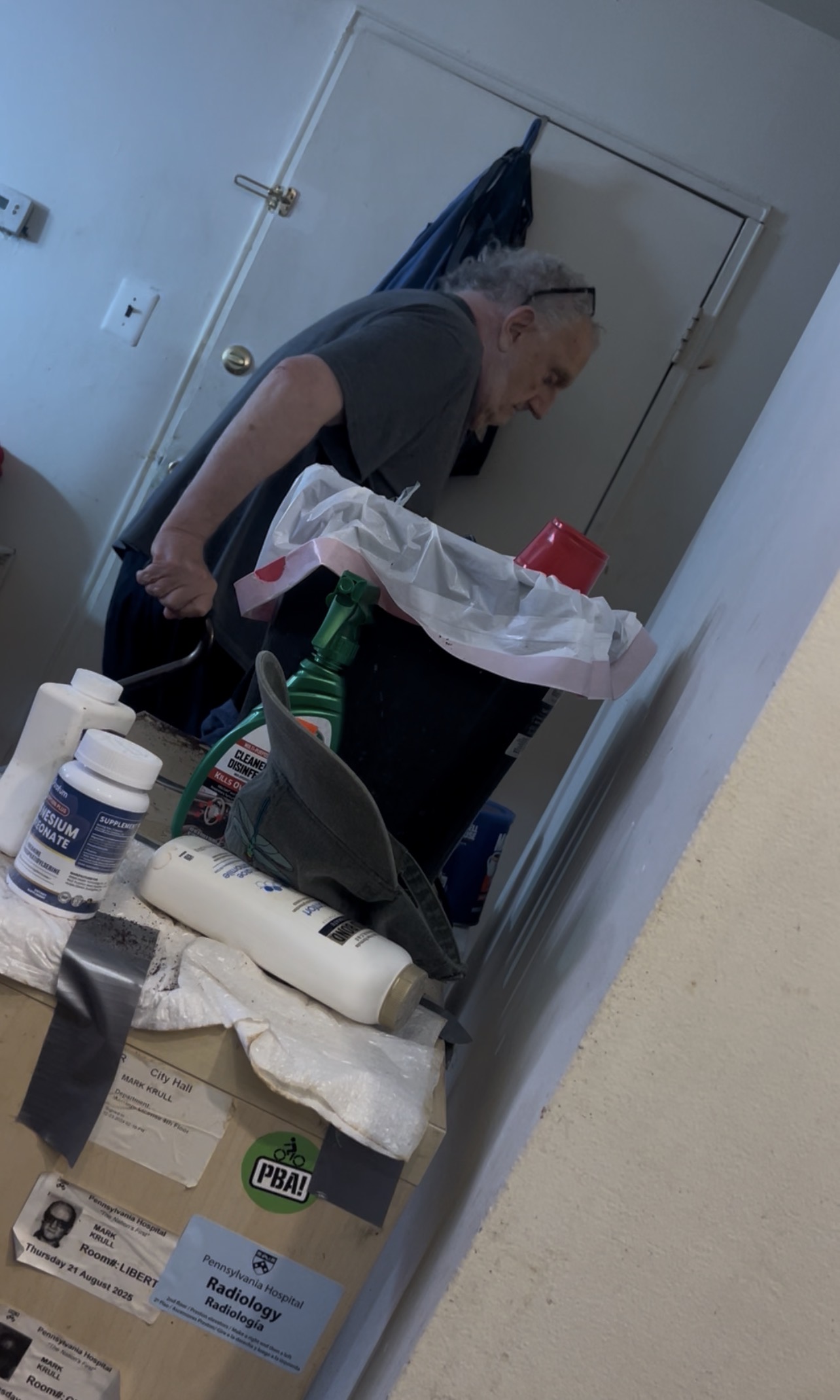 came in, and a nurse came in all between nine and 12:45 PM. Mike did clean up his table which made it make it a lot nicer in there. Oh by the way infusion supplies also came in today