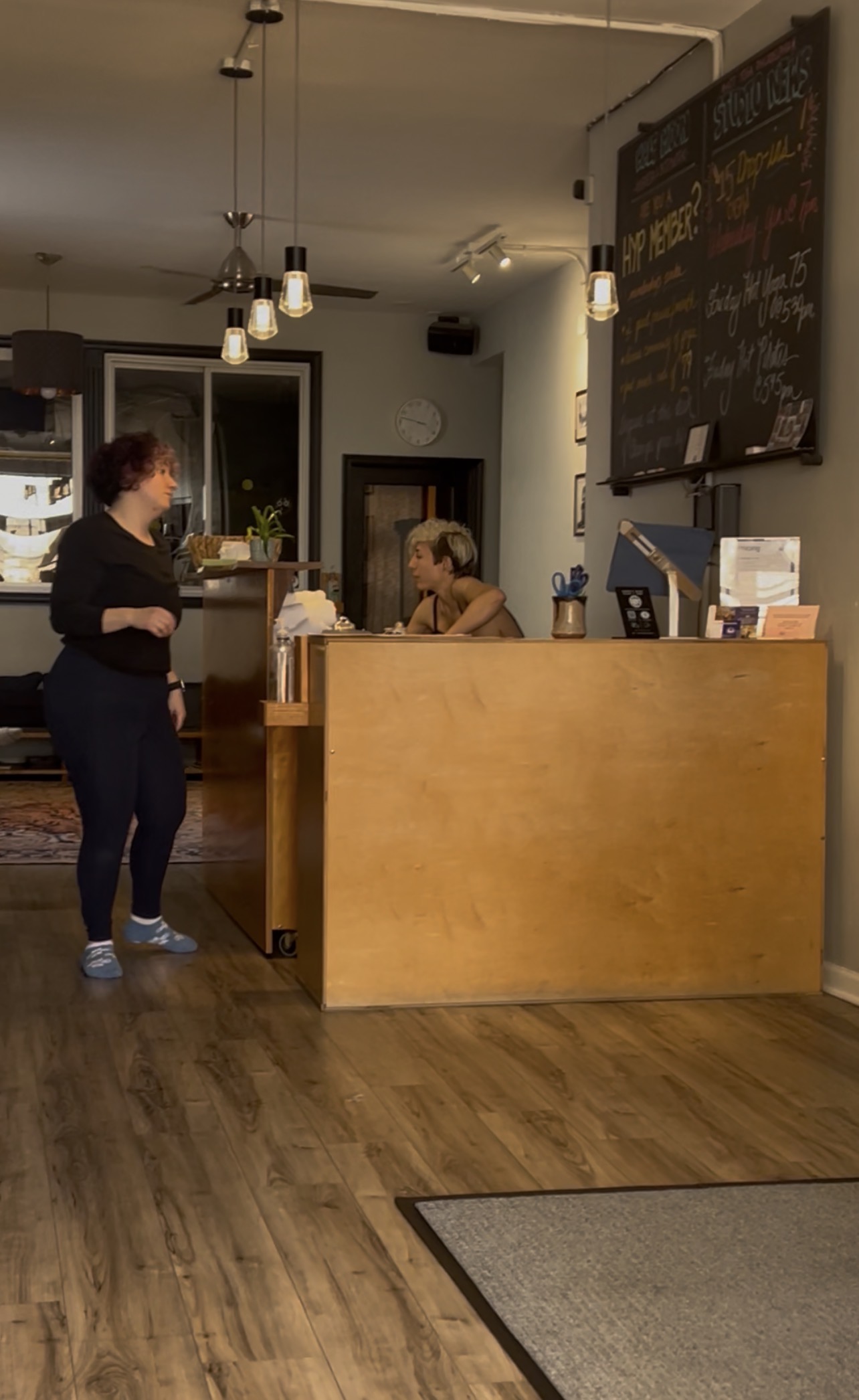 driver back because he sat there for eight minutes saying he was eight minutes away. We got the Mike’s just in the nick of time for me to sign out and go to 4 o’clock yoga. Well, Friday 4 o’clock classes taught in the fourth floor, which is the bigger studio. And Katelynn teaches it now Friday at 4 o’clock, which is really good.