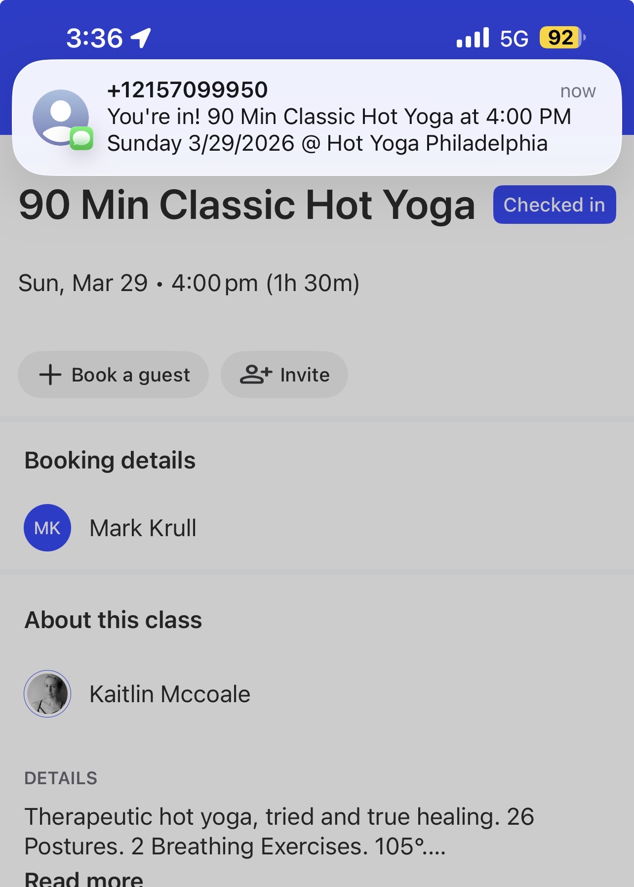 for the 4 PM 90 minute class. Kaitlyn is teaching this class as she usually does on Sunday. She gets quite a bit of attendance in this class. Are the