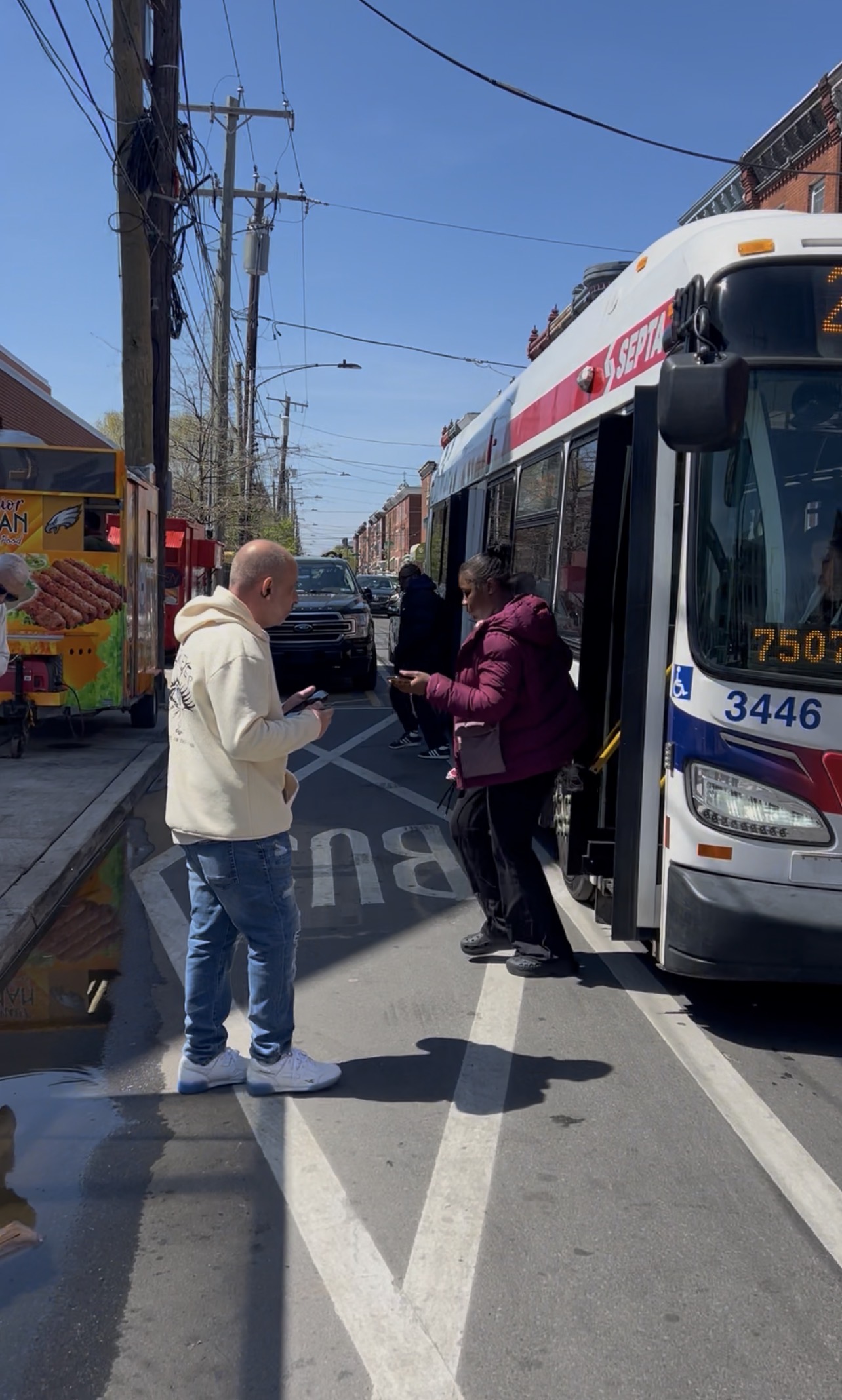 OK, boys and girls I did wake up a little bit later because I was up past my bedtime. It was OK cause I had fun last night. I got up got myself together. Got my yoga clothes got my original electronic thing brought it with me. This is for my last Rehab appointment coming up. Got the Mike’s did a little bit around the house took it pretty easy really. And Mike wanted to order a pizza and I said all right we’ll get a slice each. So I went to get the slice and while I was doing that Mary told me her optometrist did have an opening so I was scheduling my appointment for for April 28 at 12:30 PM. I put my pizza down for 15 seconds and somebody stole the box right from behind me. Can you believe that shit I mean I looked up and down in the trashcan. It wasn’t there so I had to go back and actually buy it. Mike bought the first set. Un freaking believable, but what can I say? That’s the worst thing that happens to me that I can live with it. Anyway, wait the pizza and it was very filling and very delicious. Mike and I got to talk that was fun. Anyhow, next thing you know it it was time to get ready to go to my last Rehab appointment at 1:45 PM. I caught the Broad Street line to broad and Morris. I catch the 29 bus from Broad and Morris Street. Unfortunate that this bus stop has a electronic indicators that the bus is coming so I don’t have to sweat whether the bus is coming. It’s not 1:21 PM.