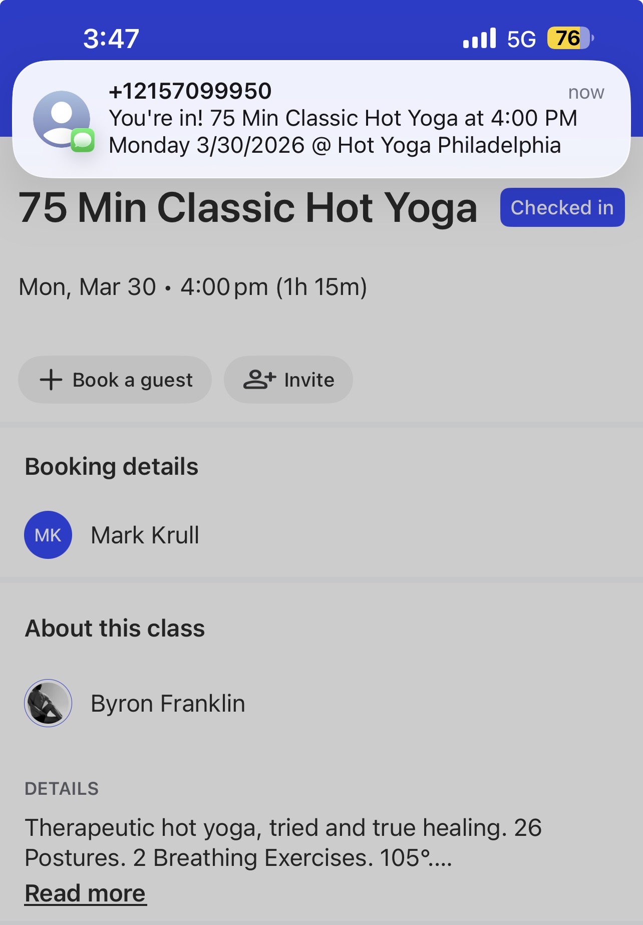 that I leave there. So I had to call Mary and ask her to bring my backpack back. Oh, by the way, the Phillies lost two out of three to Texas Rangers. Well, Mary was nice enough to bring my yoga clothes, but I have to go to Northeast Philly tomorrow again…! Anyhow, I did go to the 4 PM class with byron and I felt better. I think three good nights of sleeping helped out but you end up with a different body every day. After that we went back to Mary’s and then I had off to my 90 night beginners meeting while Mary was gonna eat her samosas and talk to old friend of her.