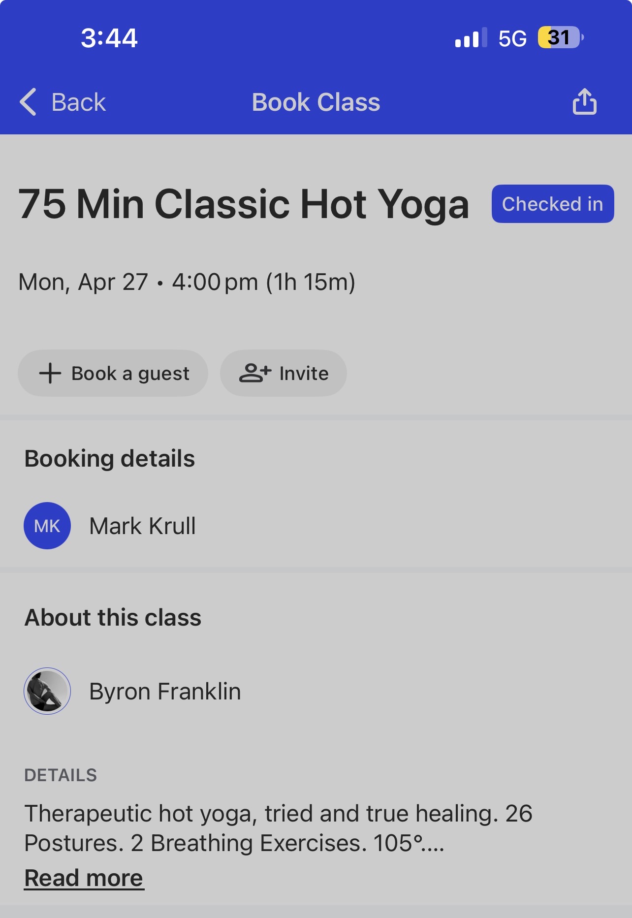 o’clock class. Once I got past the first two sets of poses I was OK, but I definitely felt weaker than normal. I made it and I left Class very early one of the first people in the