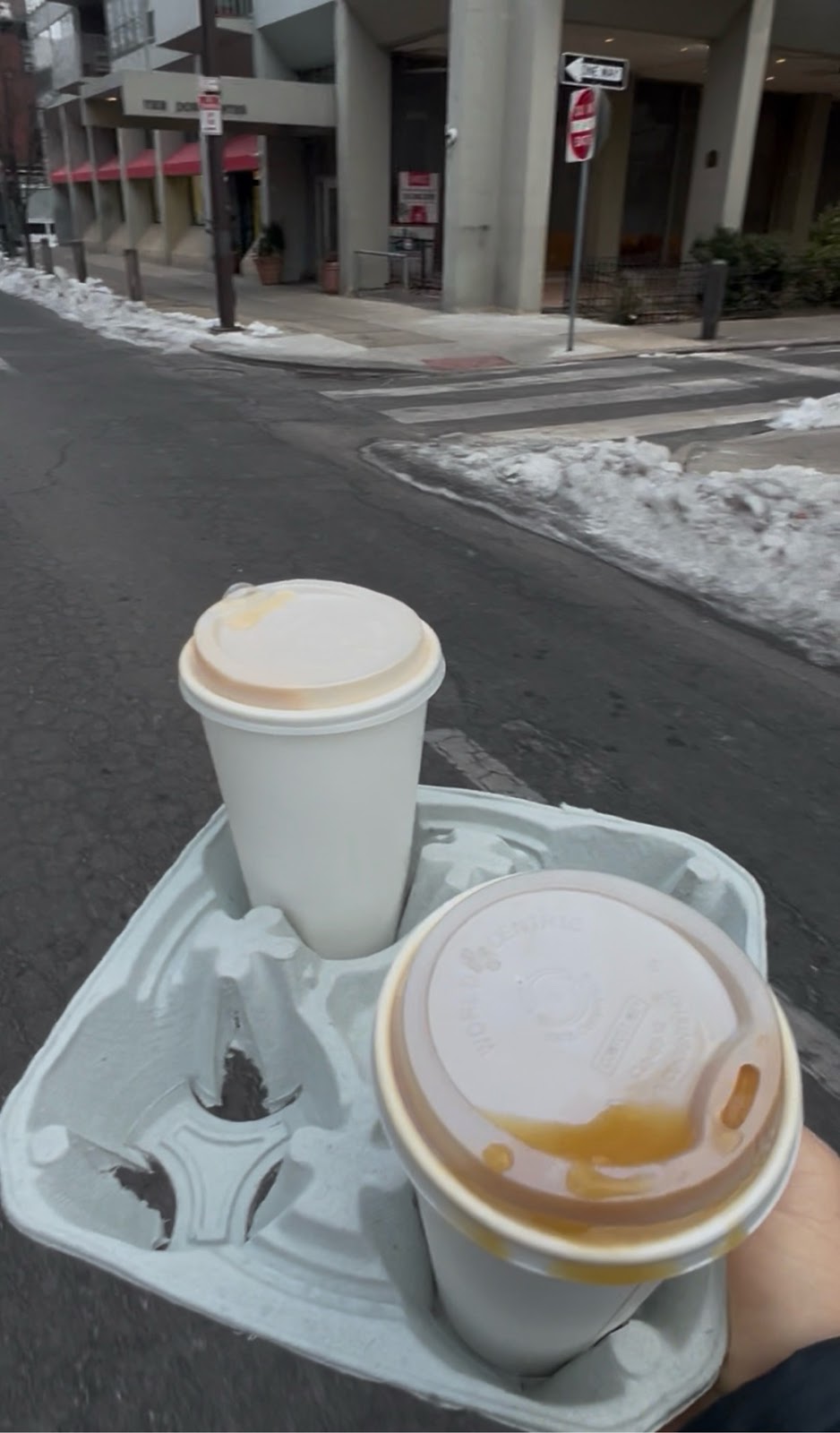 got up around 7:30 AM. I went out to Montreal spread bakery and nobody was there. I got two coffees and went to the minimart and got two
