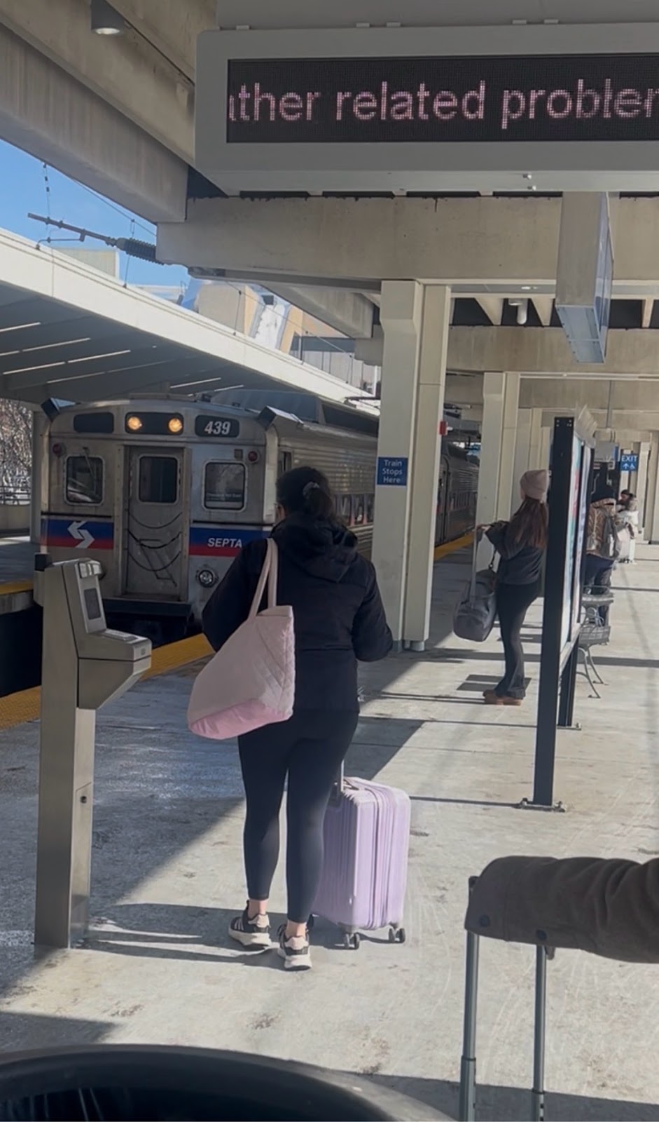 the train that was 10 minutes late due to snow problems, etc. It’s now 10:53 AM. I just hit the head and we’re gonna take Uber from 30th St. to downtown. Well,