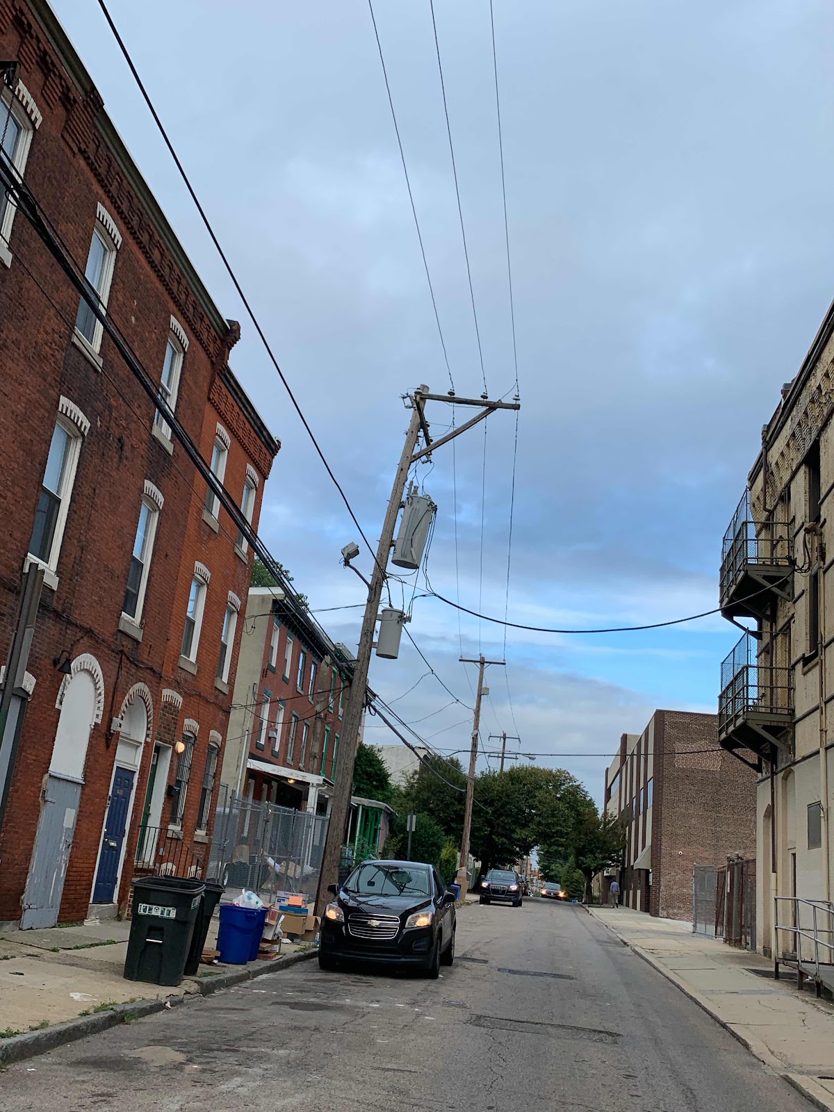 a steady drizzle falling here in Philadelphia I’m waiting at 30th St. for the 49 bus under the