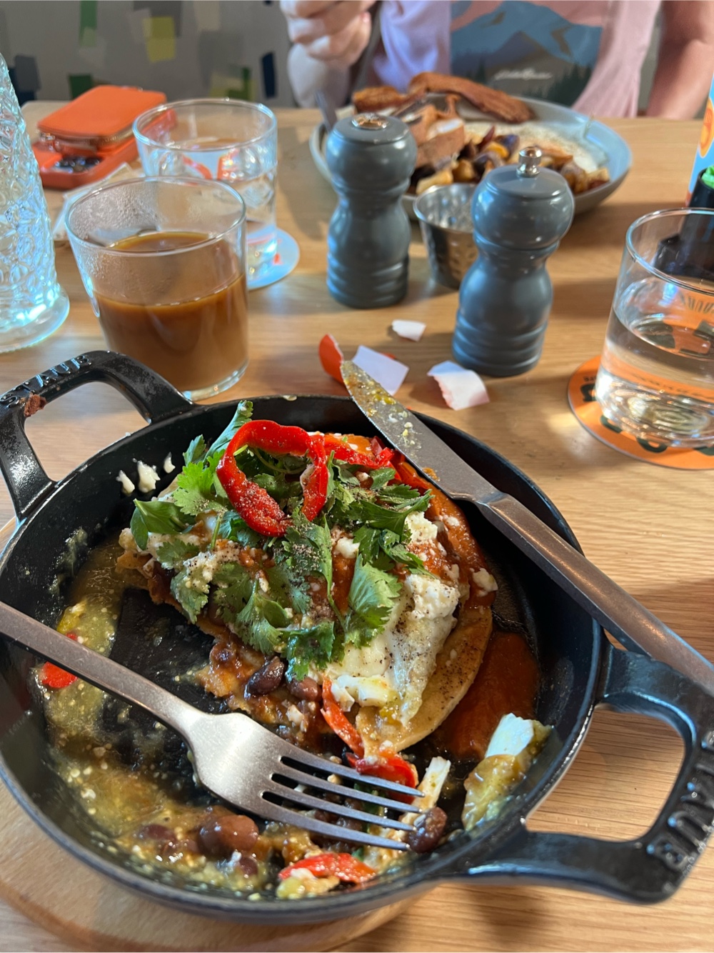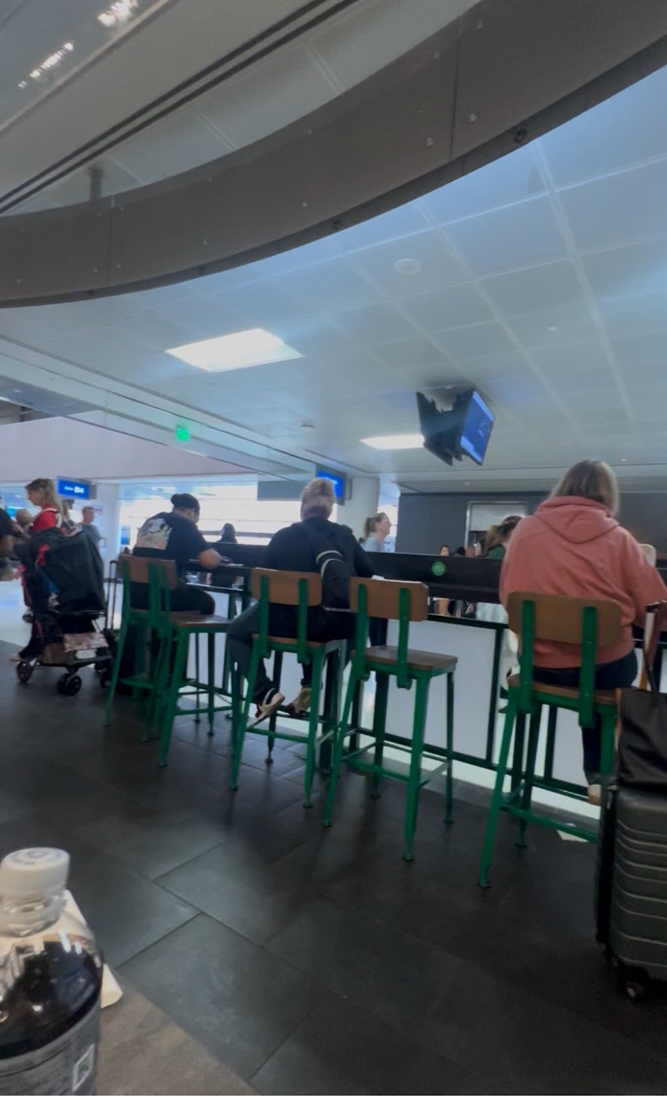 to the other. We then found a place to eat, which is good spicy Mexican food right near the terminal B3 where we are at. It’s now