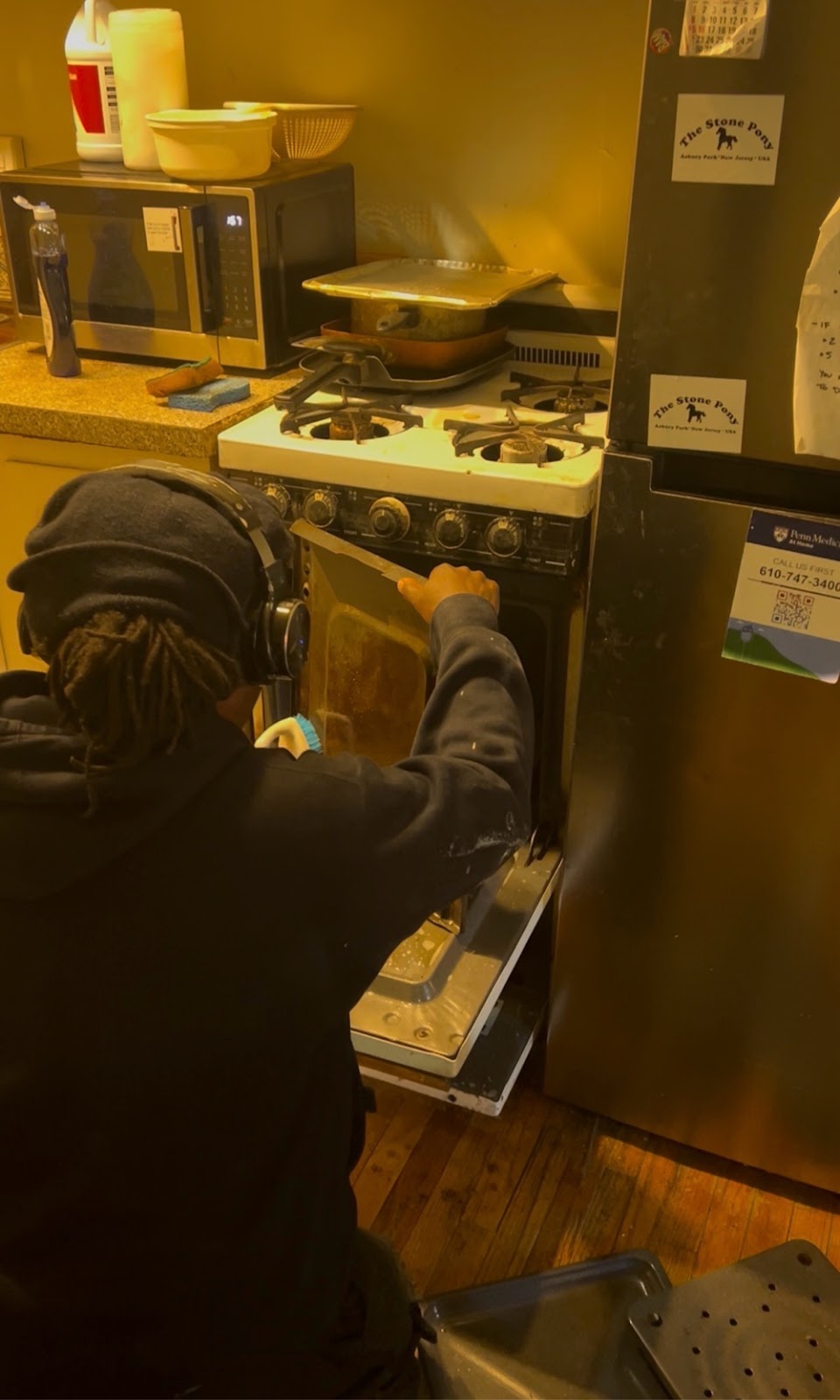 we’ll see about that. Well, when I got in, Limbo was cleaning the oven. It was the oven was supposed to clean not the stove and he had