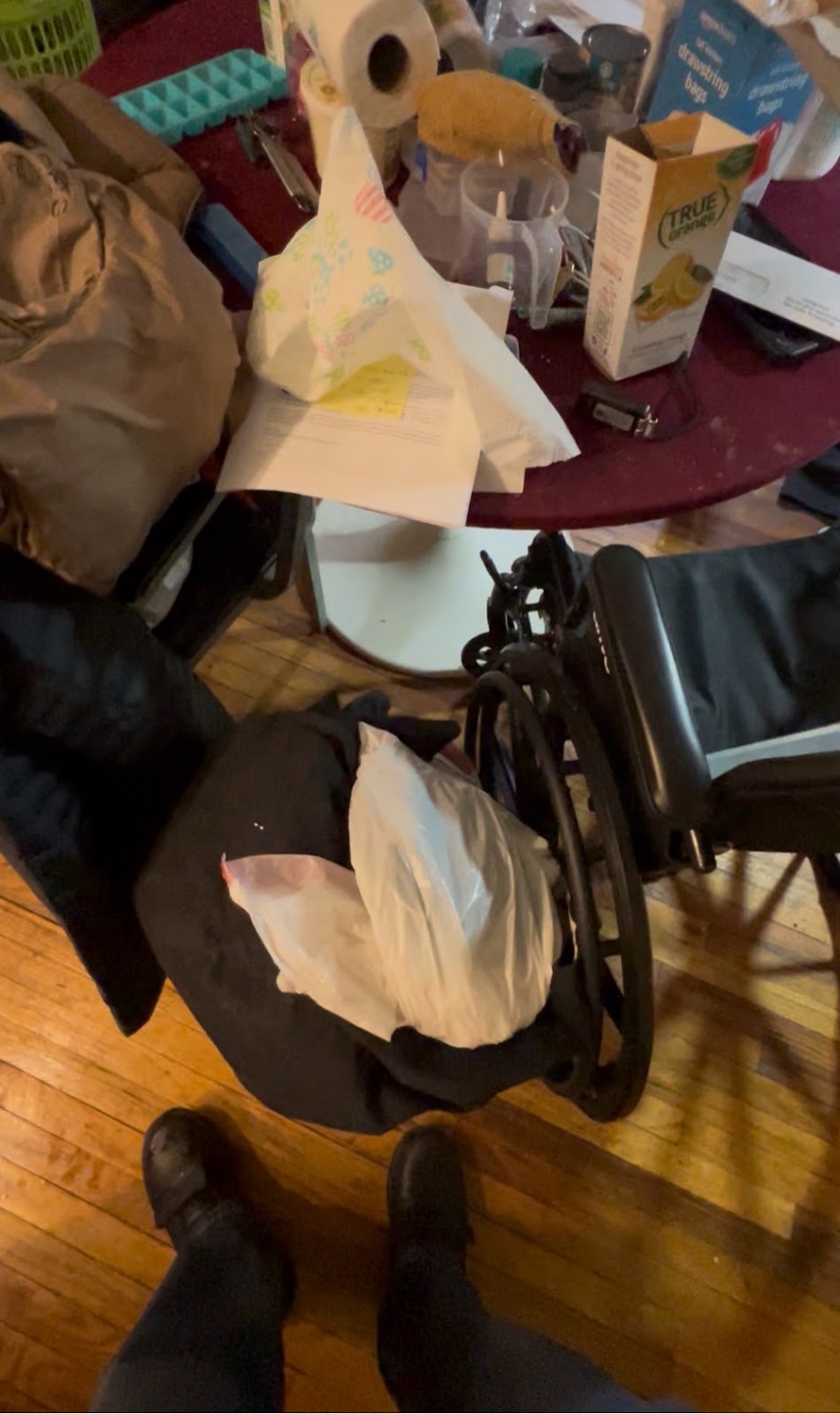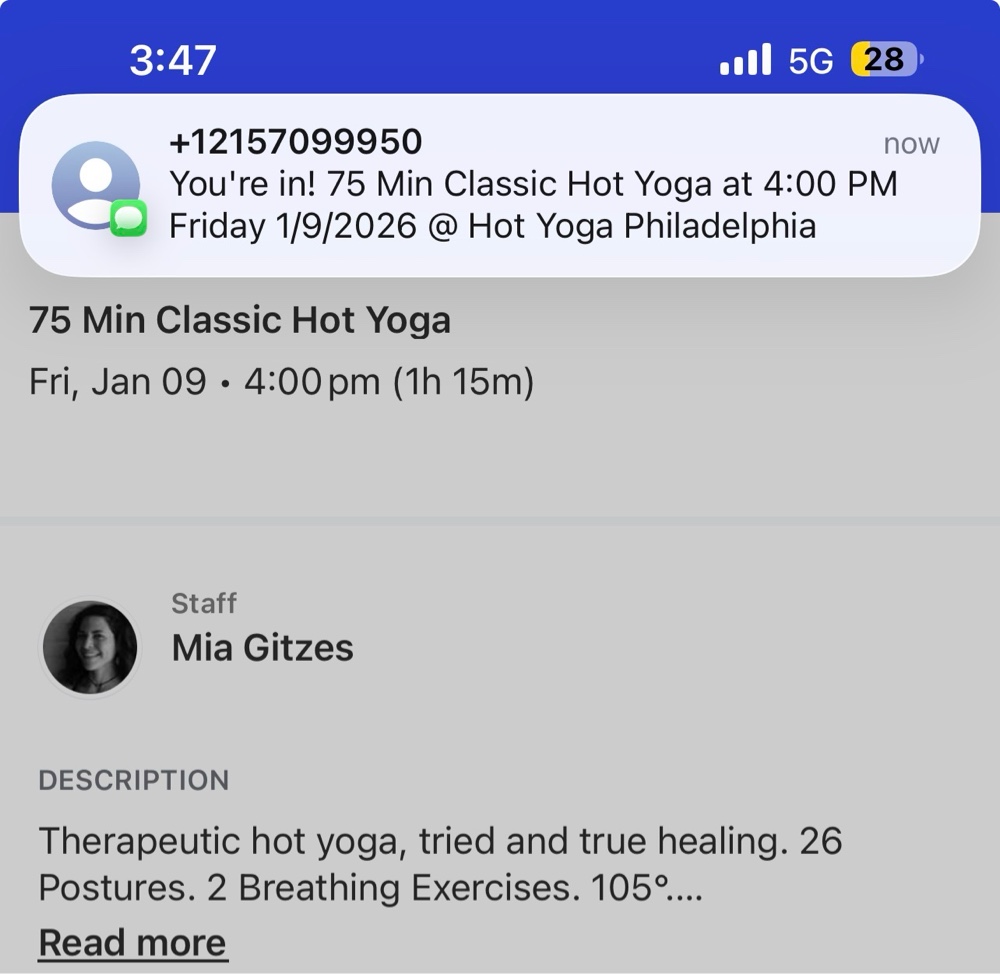 my yoga clothes on and set up shop in the studio in front of the mirror. Miah assisted with my back band since I have lack of range of motion in