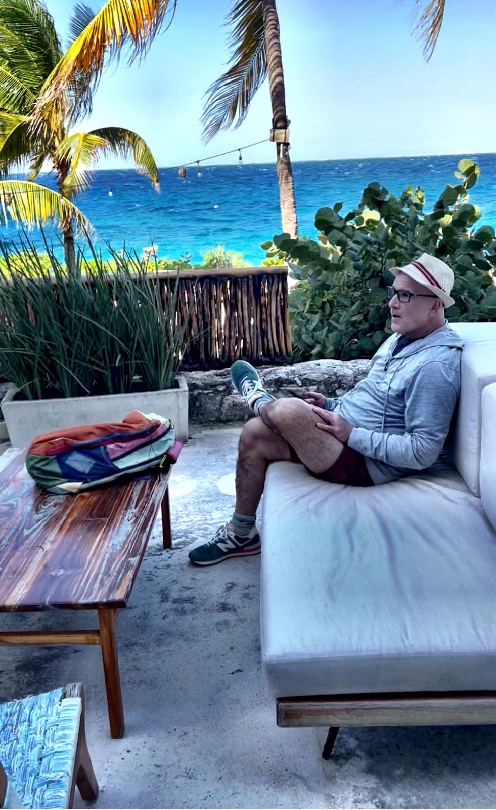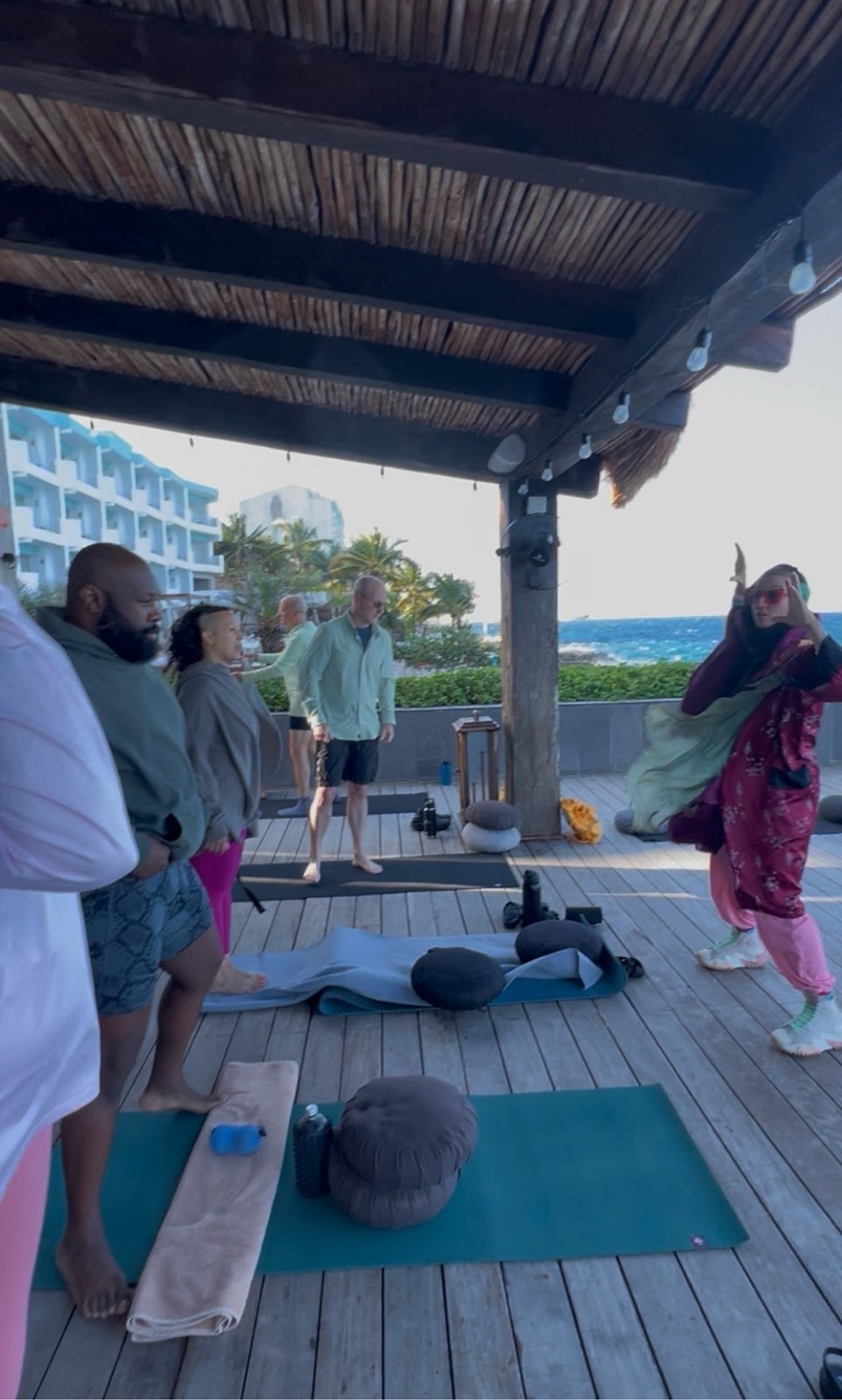 Good morning Yoga warrior this is Mark Krull speaking you from Cozumel Mexico live. Anyhow, this morning we did yoga And we did each pose only once. That was fine with me because I didn’t sleep all that well last night and you know morning my morning body is reallytough. It was a good class however the wind was blowing like crazy. It had to be at least 25 to 35 mile an hour gusts going on. definitely blowing me away. Beforehand we had breakfast of eggs and potatoes and that that was pretty good. After yoga, we had a really nice lunch. We had ceviche, we had fruit salad with hibiscus. Also, there was eggplant available. That was pretty good actually. Afterwards, we had a little bit of time to relax, but we had to get ready for the jungle tour that was being led by Lupe’s friend Tagie. Anyhow, we all had to chip in for the Van cost and to pay her as well. We did that and we all hopped into a big old van. There were 10 of us that were heading in there. We cut through the middle of the island to the Location which was basically a Myan forest. Anyhow, once we got there, we were shown lots of cool things in three different set ups we we drove to one spot and then we got the van and then we drove to another spot and went back in the van. The last stop was the longest stop was about an hour and a half. I think it was. She showed us where when her neighbor Tim is building a house and Tim gave her permission to have a tour where he’s going to live. She is helping him out and she’s she was funny. She solicited volunteers while we were walking through it. We also saw some beautiful butterflies. 🦋 She also showed formations that looked like they might’ve been constructed by the Mayans. There are ceremonial with concentric circles, one inside the other. She showed us the most sacred tree in the Mayan world, and I forgot the name of it, and she also showed us the tree that grows next to it, which is very poisonous to the touch. We had to walk by these trees several times and she warned us with how horrible the burn is from touching that tree. There’s lots of wildlife there. We’ve been took the van back. I had a digestive emergency thatI had to take care of. Ended up I had to wash my blue jeans. Anyhow, after that we had dinner which was pretty good and then and we hung out for a little while. I then got massive gas and I was gonna order something from an App called Rappi. I made the order which including chippingfor two sets of Pepto-Bismol one and pills and one in liquid and then the order got weirdly canceled, but they already refunded the money reallyquick. I saw it on my credit card statement. So that worked out OK I ended up feeling better and got ready to go to bed. I took extra precaution and took a trazodonealong with my gabapentin and made sure that I go to sleep since I didn’t really sleep the night before. I officially canceled doing any kind of scuba tomorrow. I just didn’t feel like I was gonna be up for that stuff. Believe it or not tomorrow’s our last day in Cozumel. I think the plan tomorrow is regular 9:15 AM Yoga and then we’re gonna be catching a boat to do a snorkeling. I just feel a lot less pressured trying to do your scuba, especially in this kind of wind and I wanna leave with a positive experience that I had the other day. Will be coming back to a real winter mix going on where it’s gonna plummet in the teens and then the single digits next weekend. I also have plenty of business to take care of such as getting a dental cleaning and I need a crown then I have a choir concert happening Friday and Saturday of this week. I’m missing a rehearsal tomorrow and but I will be attending a rehearsal. I believe Wednesday or Thursday. I have to check that out.