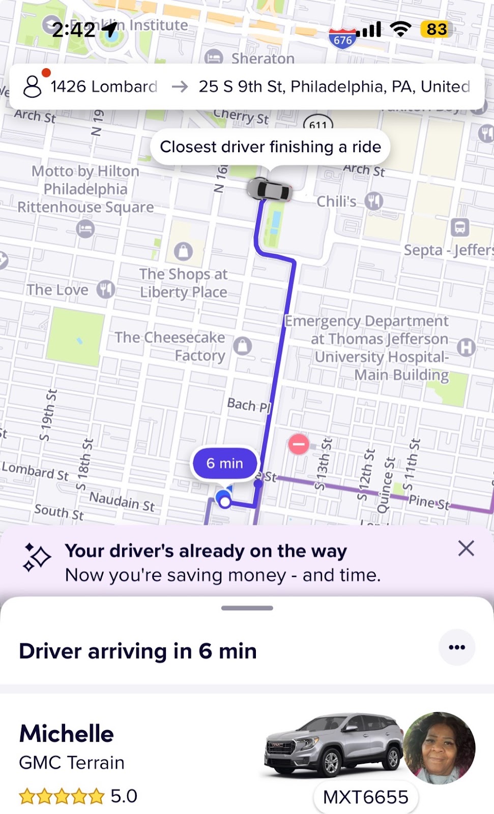my shoulder. We really had to work hard to get this appointment. well, I went with LIFT to wait and save and the driver was picked up very quickly and it was only a six minute wait. I left around 2:50 PM and