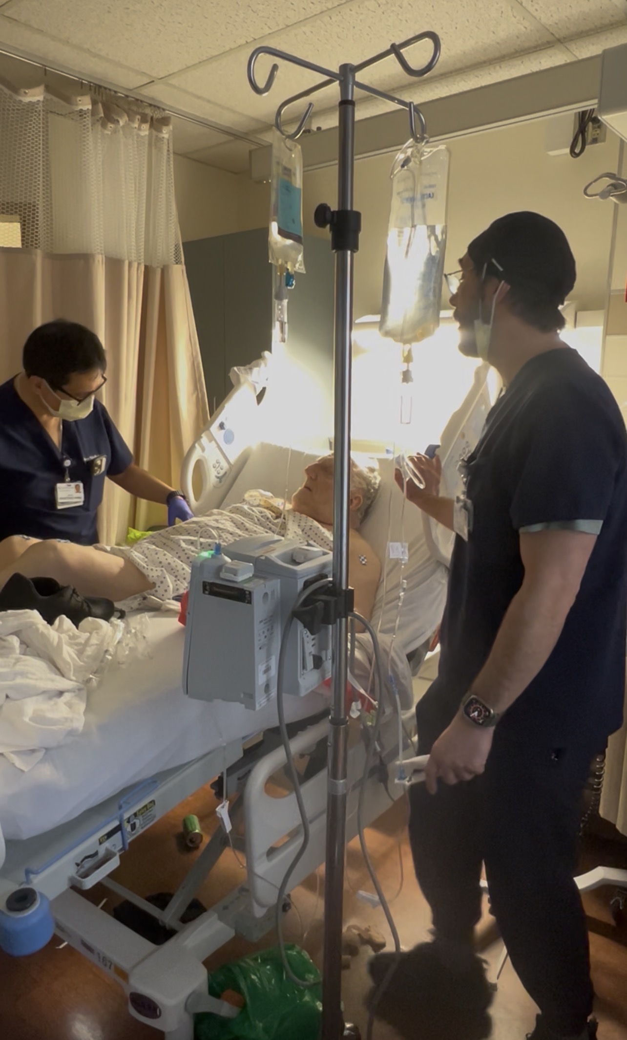 They’re loading them up with potassium chloride to make up the fact he lost a lot of potassium during his whole